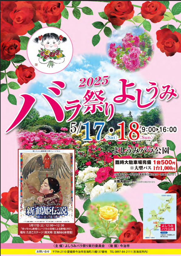 5月17日(土)に開催される「バラ祭りよしうみ2025」のイベントに、「新 鶴姫伝説~鎧に白い花を~」のキャストが出演いたします。