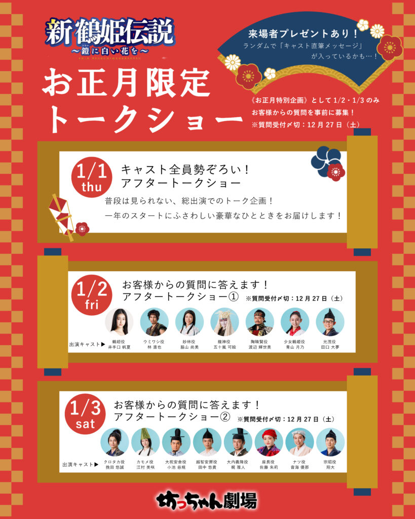 新年の三賀日、公演後に《アフタートークショー》を開催します!