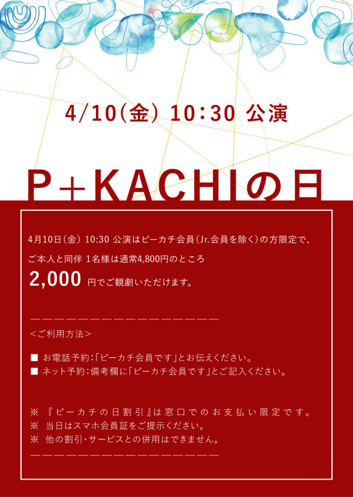 ※『ピーカチの日割引』は窓口でのお支払い限定です。